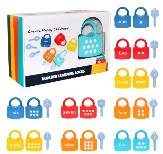 مجموعة ألعاب مفاتيح القفل الأبجدي للأطفال ، أقفال السيارات ، تعليمية مونتيسوري ، مطابقة الأرقام ، ألعاب رياضيات منزلية ، إدراك كلمات الطفل ، 10 *
