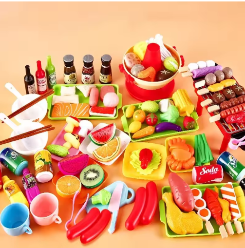 مطبخ لعب التظاهر التعليمي للأطفال - مجموعات محاكاة طعام الخضروات والشواء والطبخ ألعاب منزلية تفاعلية للفتيات