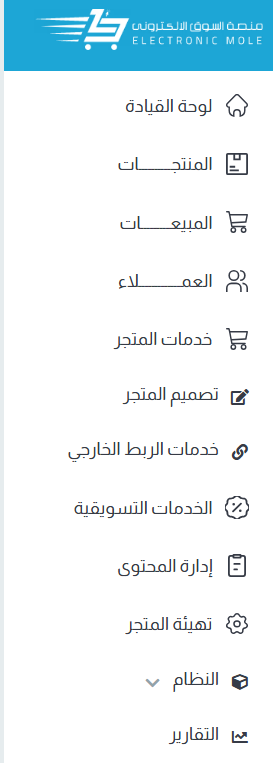 أولاً:عن طريق المتجر الخاص بك ويكون اما عن طريق اضافة الكلمة admin في نهاية الرابط كمثال https://niceclothes.e-mole.net/admin